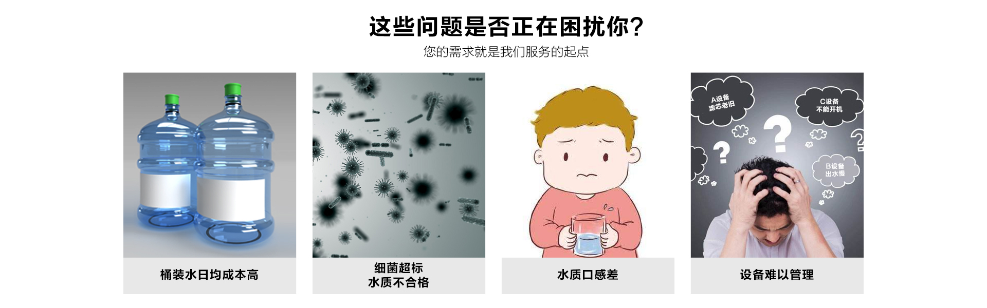 不同的飲水點(diǎn)可根據(jù)實(shí)際使用情況,選擇租賃管線機(jī)或飲水設(shè)備或開水器,使用戶能喝上開水、溫開水、純凈水等,來滿足不同場景的飲水需求;